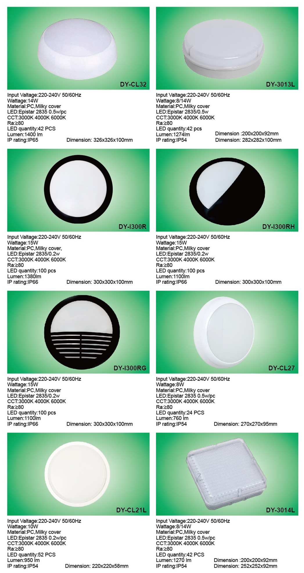 | DY-CL32 | 14W | 3000-6000K | 1400lm | RA≥80 | IP65 | 326*326*100mm |